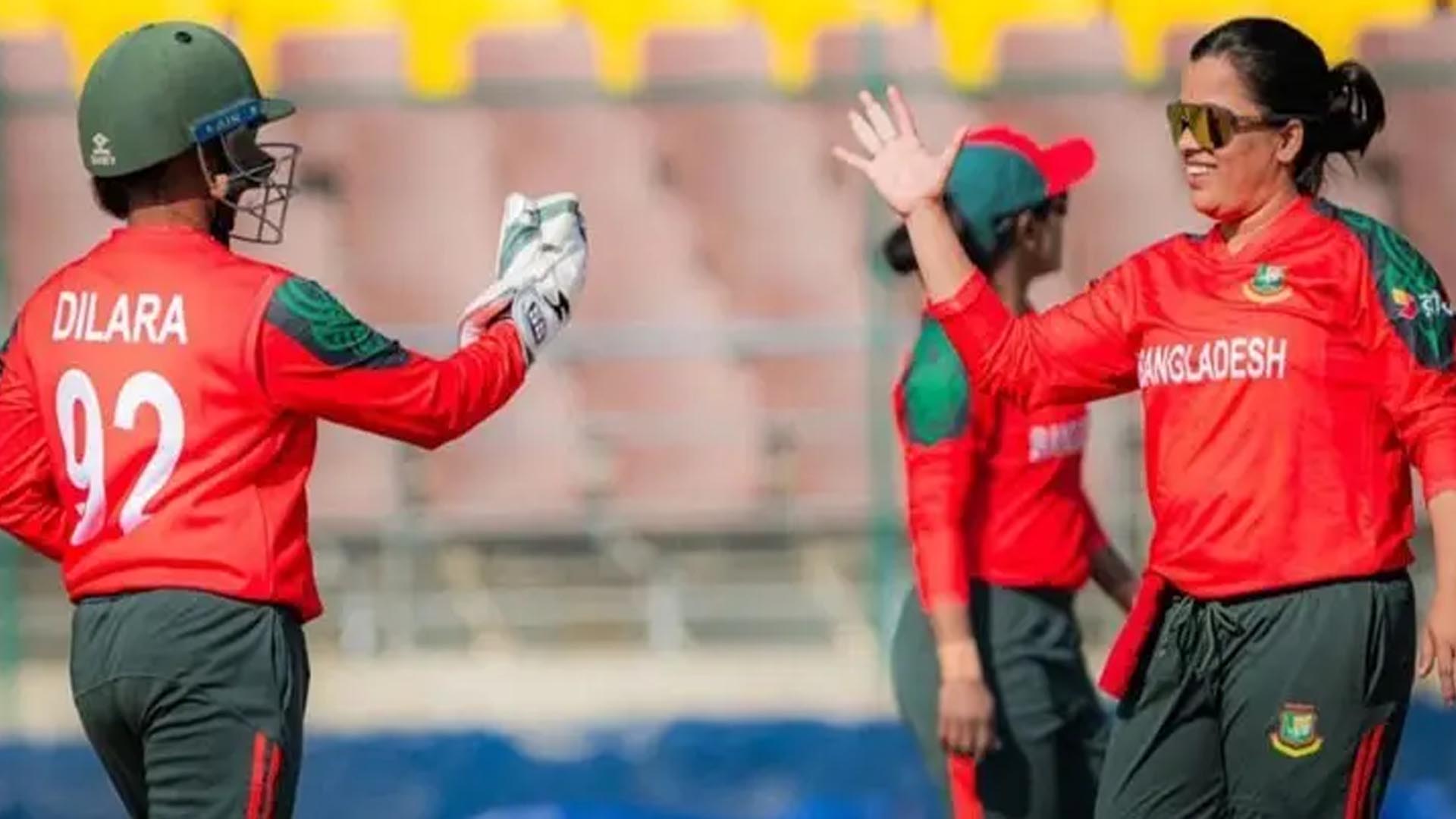 এর আগে জোয়াইরিয়া ফেরদৌস এবং সোবহানা মোস্তারির জোড়া ফিফটিতে ৮ উইকেটে ১৬৫ রানের পুঁজি দাঁড় করিয়েছে বাংলাদেশ।