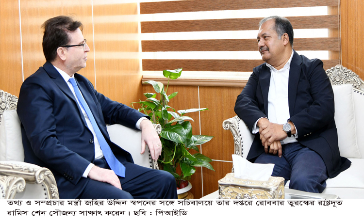 সাক্ষাতকালে তুরস্কের রাষ্ট্রদূত সে দেশের রাষ্ট্রীয় টেলিভিশন ও রেডিওর সঙ্গে বাংলাদেশ টেলিভিশন ও বেতারের মধ্যে সহযোগিতা বৃদ্ধি সংক্রান্ত প্রস্তাবের কপি তথ্যমন্ত্রীর কাছে হস্তান্তর করেন।