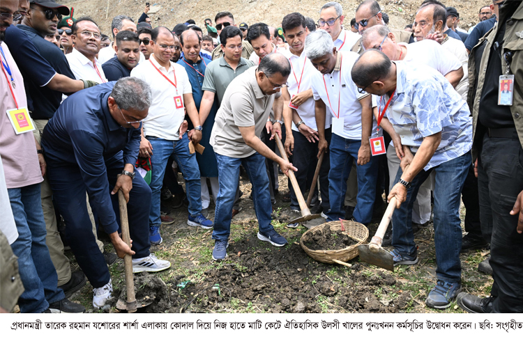 প্রধানমন্ত্রী তারেক রহমান যশোরের শার্শা এলাকায় কোদাল দিয়ে নিজ হাতে মাটি কেটে ঐতিহাসিক উলসী খালের পুনঃখনন কর্মসূচির উদ্বোধন করেছেন।