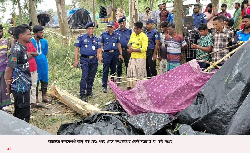 নওগাঁর আত্রাইয়ে কালবৈশাখী ঝড়ে গাছ ভেঙে পড়ে বেদে সম্প্রদায়ের আরাফাতুন (২০) নামে এক অন্তঃসত্ত্বা নারীর মৃত্যু হয়েছে।
