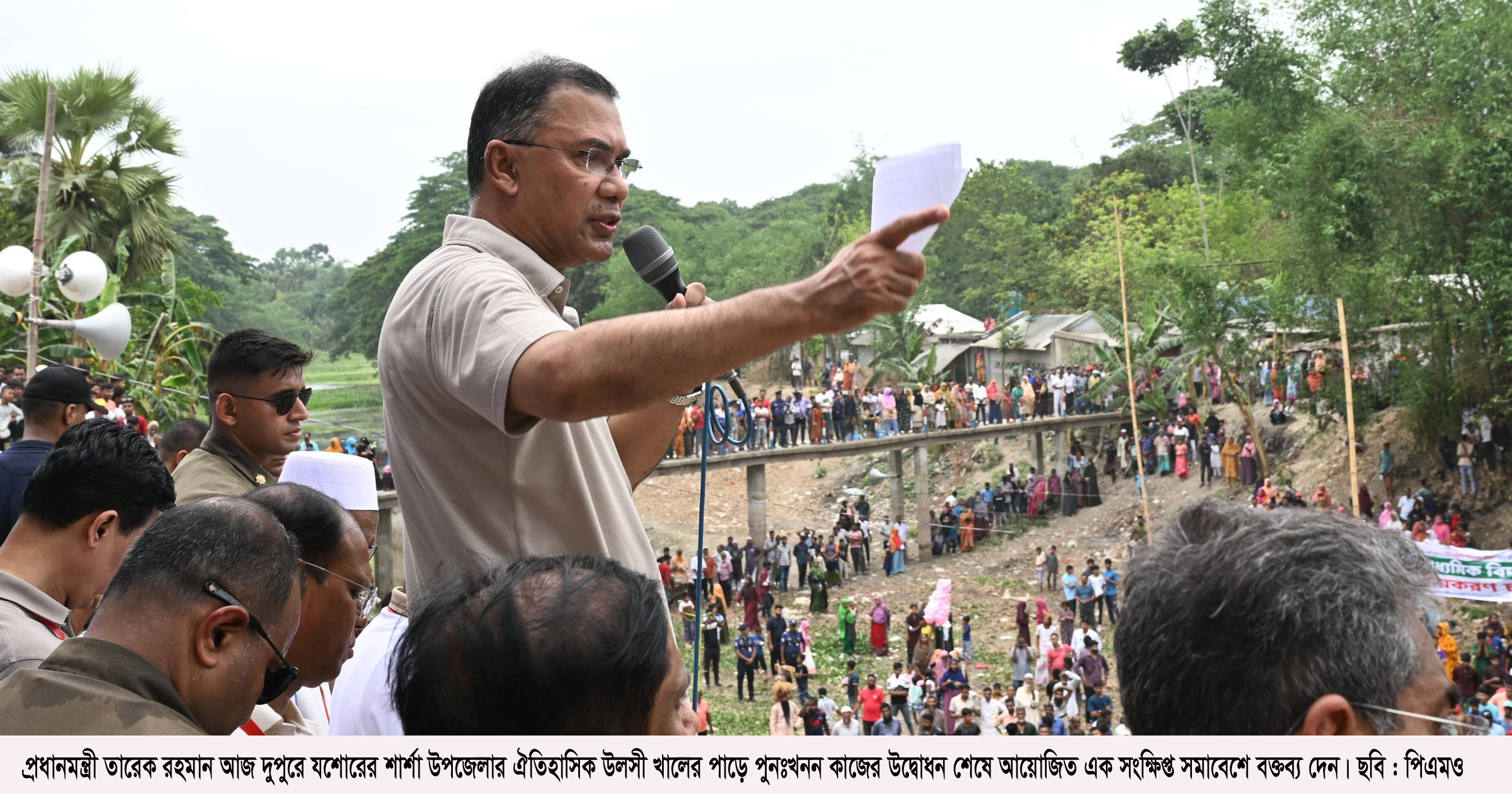 উলসী খাল দেখিয়ে দিয়ে তারেক রহমান বলেন, ‘এই খালে পানি নাই। কারণ, এই খালগুলো আজকে রুদ্ধ হয়ে গেছে, ভরাট হয়ে গেছে। বিভিন্ন জায়গায় খাল দখলও হয়ে গেছে। এই যে খাল ভরাট হয়ে গেছে, খাল বন্ধ হয়ে গেছে, খাল দখল হয়ে গেছে, তাতে কি সাধারণ মানুষ বা কৃষকদের কোনো উপকার হয়েছে? কোনো উপকার হয়নি।’
