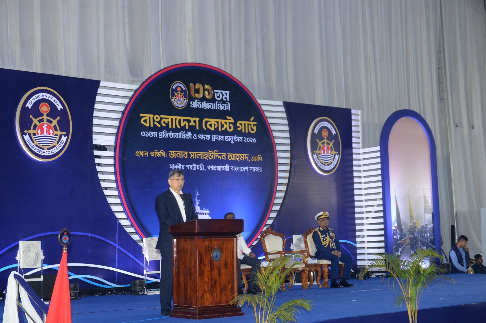 স্বরাষ্ট্রমন্ত্রী সালাহউদ্দিন আহমদ বলেছেন, দেশের সমুদ্র ও উপকূলীয় এলাকার নিরাপত্তা নিশ্চিত করতে বাংলাদেশ কোস্ট গার্ড আজ আস্থার প্রতীকে পরিণত হয়েছে। দেশনেত্রী বেগম খালেদা জিয়ার দূরদর্শী চিন্তায় প্রতিষ্ঠিত এই বাহিনীকে একটি আধুনিক, শক্তিশালী ও যুগোপযোগী বাহিনী হিসেবে গড়ে তুলতে বর্তমান সরকার সব ধরনের পদক্ষেপ গ্রহণ করছে।